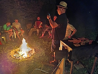 Komu kluci z PC 5 pošlou pozvánku na své soustředění, je může být šťastný člověk. My to štěstí máme a již několik let jezdíme za nimi na soustředění do Hněvkova. Letos jsme se vydali ve třech Jošt, Fojt a František. Posbírali se do jednoho vozu a vyrazili. V Hněvkově byli kolem páte a Ruďáci už byli v plném soustředění. Zapojili jsme se do procesu dýmka, pivo, jídlo zábava a ani se nám nechtělo večer domů. Kluci díky za pozvání!!!