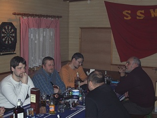 Rok se s rokem sešel a pro některé z nás dlouho očekávaný kouřový dýchánek v Hranických Loučkách se stal skutečností. Jednalo se již o 7. výjezdní zasedání a tak Světluška vymezil svoje zařízení pouze pro naše potřeby. Tentokrát již od čtvrté hodiny odpolední jsme se začali trousit do příjemně vytopené Víťovy hospůdky. Jako první dorazil Lojza, Kuba a Jirka (čekatel na členství) a pak se dostavili i Jožka, Honza, Garfield, technik, Aleš, Honza (další čekatel na členství), Dušan (rozhodčí Starostovy Fajfky) a celé shromáždění uzavřel Jirka Pernický. Zbytek nedorazil z pracovních, rodinných či studijních důvodů – tak rozmanitá jsme společnost. Jako první jsme si nacpali dýmku nebo zapálili doutník každý podle chuti a k tomu si dali nejčastěji pivo. Pokladník zúčtoval s dlužníky a mohlo začít „zasedání“. Garfield, jako letošní ředitel soutěže O starostovu fajfku, rozdělil úkoly a domluvila se pravidla soutěže. (Mimochodem zůstala stejná jako loni). Po skončení formalit s organizováním soutěže se přistoupilo k hlasování o přijetí nových členů do našeho klubu gentlemanů. Vše dopadlo dobře a tak jsme o dva členy větší. Pak už se zábava mohla rozběhnou nekontrolovaně naplno. Jen Jožka si zahrál na modela a Lojza ho zvěčnil na plakát. Pro některé byly vrcholem večera výtečné mexické fazole s uzenými žebírky z kuchyně našeho hostitele. Naprosto dokonalý pokrm, který by ani Polreich tak dobře neuvařil. Po večeři proběhl malý přijímací rituál, kdy každý z členů tvrdého ňadra dal trochu svého tabáku a nováčci jej vykouřili z neopracovaného přířezu. Poté zase přišlo na řadu jídlo. Obložené mísy, každý si dal, co měl rád. Jídlo zmizlo rychlostí světla. Zase o něco spokojenější jsme pokračovali v naší oblíbené činnosti – kouření a povídání. Místnost se krásně zahalovala do hustého, pomalu se valícího dýmu. Když se blížila 23.hodina tak někteří nás už museli domů. TI otrlejší to táhli dál až do půl 4. To už byla poslední tečka za úžasným večerem. Ráno jsme dostali vydatnou snídani v podobě míchaných vajíček. Ten, kdo chtěl odjet, zkoušel na alkoholovém testeru, jestli se už může odporoučet domů. Někteří zjistili, že včerejší míra pití byla trochu větší než povoluje norma k řízení automobilu, proto museli ještě chvíli zůstat. A co závěrem? Už se zase těšíme na příští rok, až tuto akci zopakujeme, ale před námi je teď Starostova fajfka, tak se těšíme a nashledanou tam.