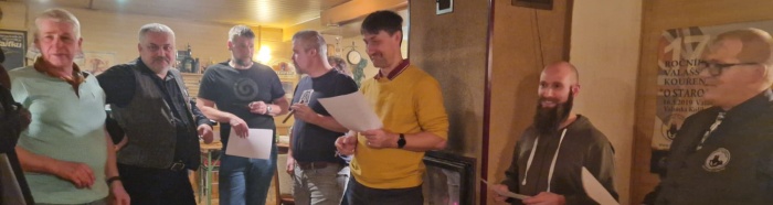 Zase po roce. Na známém místě, ve skoro stejné sestavě, jsme se v pátek o pěti potkali v náhradním doupěti, neboli v bydlišti našeho světlušky Víti. Účast byla téměř 100%, neboť dostavit se na jubilejní shromáždění je prakticky do kamene vytesaná povinnost. Vzpomenuli jsme na kamarády, kteří již nejsou mezi námi, to byla ta vážnější část večera. Pak nám Jiří předložil statistiky našich účastí a výsledků na soutěžích. To už byla větší legrace. Pokladník přednesl zprávu ó stavu financí, to bylo také vcelku pozitivní. Pak jsme se vzájemně ocenili za všechno možné, dále jsme připili na zdraví oslavenci Zdeňkovi a probrali podmínky pro přijetí nového člena. Pak jsme se věnovali přípravě Starostovy fajfky, přece jen se blíží, i když duben se zdá být daleko. A po večeři jsme si i zazpívali, tak jak se na pánský spolek sluší :-) Většina z nás odjela ještě v noci domů, přespávající skupina do noci hrála karty a snad dokonce i šachy. Nástěnkář